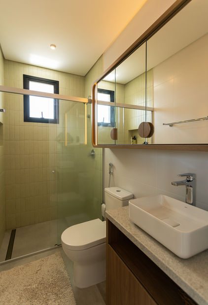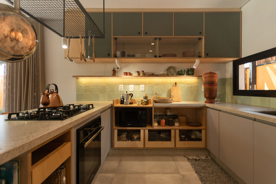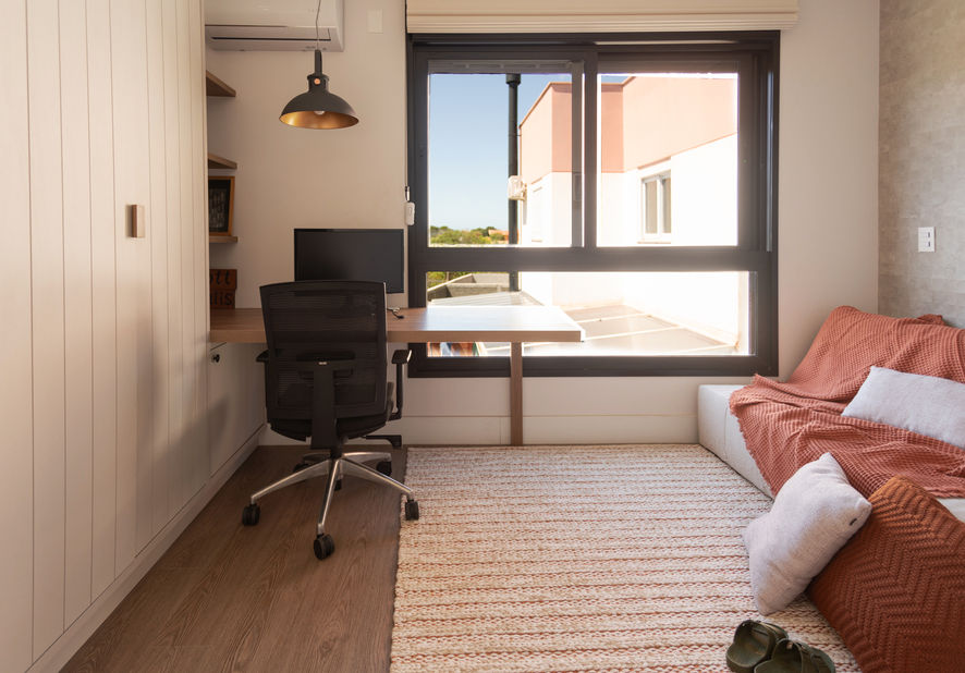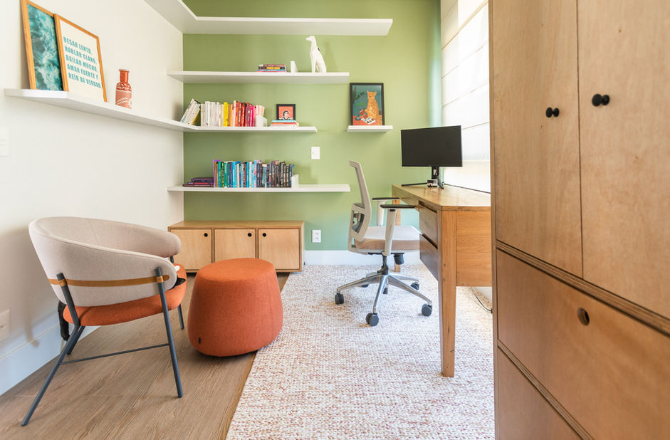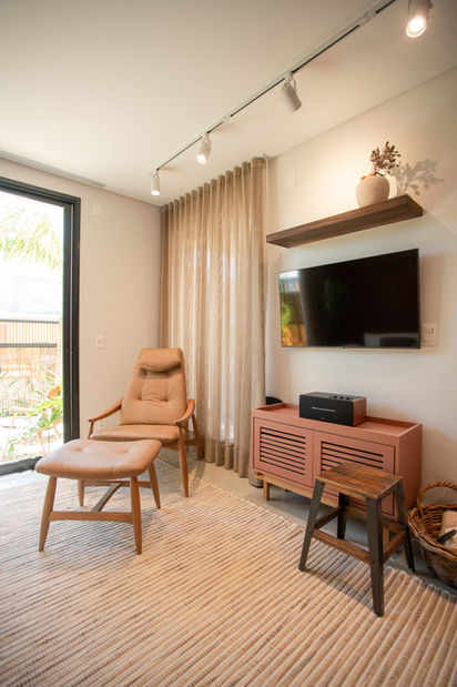 Para a área interna, optamos por manter o layout original da casa, visto que o pavimento inferior da residência já era completamente integrado e bem conectado à área externa através de algumas portas de vidro. Com o projeto, incorporou-se cor, textura, personalidade e aconchego aos ambientes internos da casa.